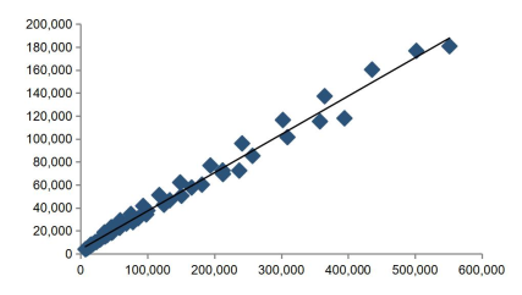 固定資產(chǎn)投資與建筑業(yè)總產(chǎn)值散點(diǎn)圖