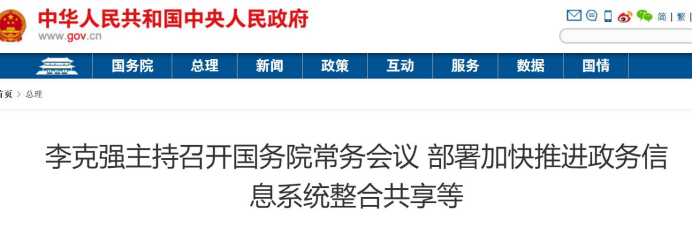 國務(wù)院總理李克強12月6日主持召開國務(wù)院常務(wù)會議,部署加快推進政務(wù)信息系統(tǒng)整合共享,以高效便捷的政務(wù)服務(wù)增進群眾獲得感;